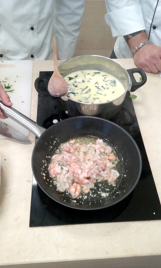Dopo la parte relativa al Management, gli allievi hanno affrontato una parte teorico pratica dedicata alla cucina fusion. Dopo aver analizzato i concetti chiave dell’argomento ed alcune materie prime tipiche della cucina Asiatica, gli allievi hanno realizzato varie portate oggetto dell’argomento. Proprio come in una cucina di un ristorante ognuno aveva le proprie mansioni e tutti venivano guidati dall’Executive Chef e, proprio come una brigata coesa e ben organizzata, si è arrivati in breve tempo alla meravigliosa presentazione di piatti dal profumo, aspetto e sapore esotico (mica penserete che non abbiamo assaggiato vero?!). Il TASTE ha rivelato un’armonia gustativa insospettata, visto che gli ingredienti di partenza ci sono apparsi un po’ stravaganti.. e a dirla tutta anche agli allievi mentre stavano preparando le pietanza! L’apparenza ha ingannato e non poco: sapori, profumi ed aromi hanno stupito. Di tutti i piatti, e sono tanti, realizzati nell’arco di circa 40 minuti, ci sentiamo in dovere di menzionare l’indimenticabile zuppa di gamberi con latte di cocco e basilico e gli straccetti di manzo in salsa d’ostriche… delle vere delizie.